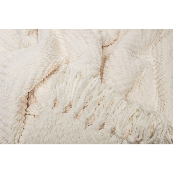Textured Knit Creme Acrylic Polyester Throw Blanket with Tassels - 50 in. x 65 in.