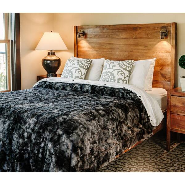 Wolf Black Polyester Throw Blanket with Reversible Sherpa Shearling-108 in. x 86 in. , King Size