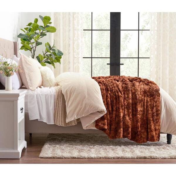 Wolf Cinnamon Faux Fur Polyester Double Sided Oversized Throw Blanket, Queen