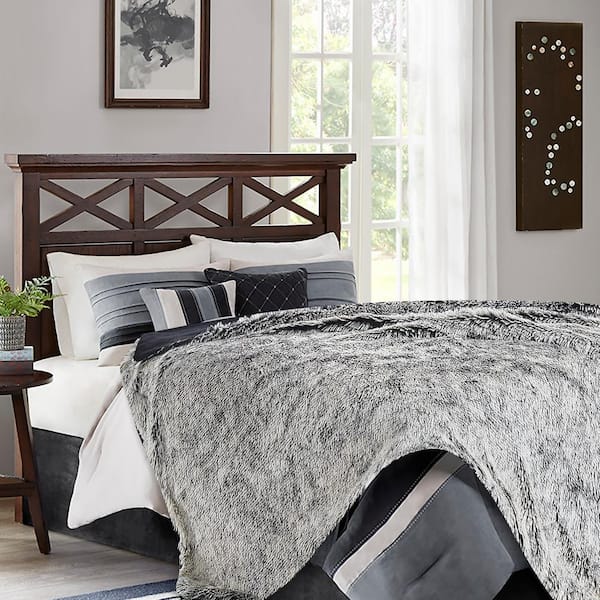 Wolf Frost Tip Black Two Color Polyester Faux Long Fur Throw Blanket - 50 in. x 65 in.