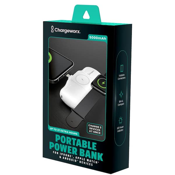 Power Bank-5000mah Capsule with C-Cable and Apple Watch Charger, White