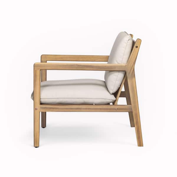 Agatha 8-Piece Outdoor Solid Wood Patio Conversation Set with Beige Cushions, Coffee Table, Light Teak