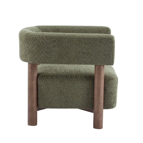 Alcott Olive Green Boucle Fabric Upholstered Solid Wood Accent Arm Chair