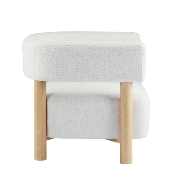 Alcott White Boucle Fabric Upholstered Solid Wood Accent Arm Chair