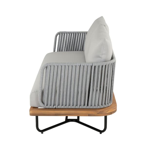 Cali 4-Piece Solid Wood and Rope Weave Outdoor Patio Conversation Set with Grey Cushions, Teak plus Grey