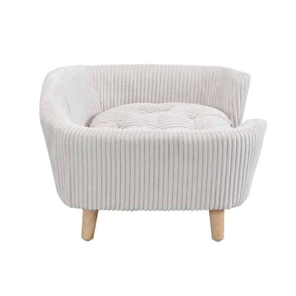 Cooper 30.25 in. W Beige Corduroy Upholstered Elevated Dog Bed with Solid Wood Legs