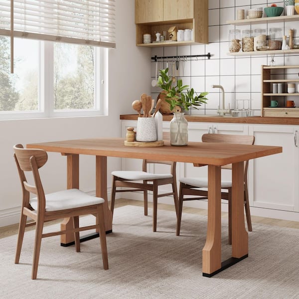 Foxcroft Modern 63 in. Natural and Black MDF Wood Rectangular Double Pedestal Dining Table, Seats- 6