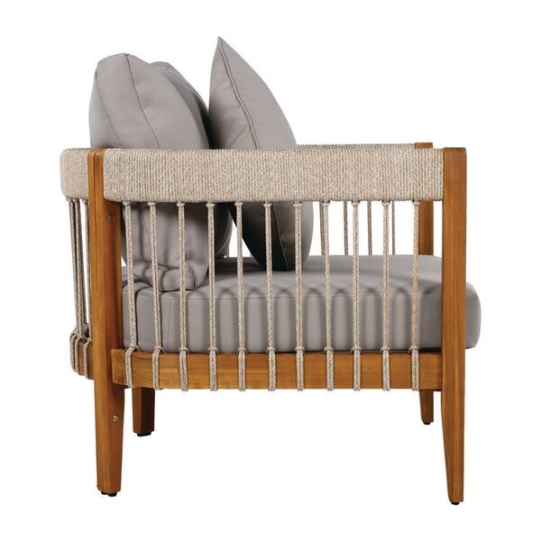 Francisco Natural Finish Wood and Handwoven Rope Patio Outdoor Lounge Chair with Grey Cushions