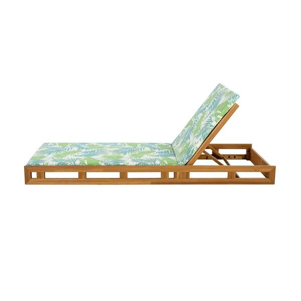 Gail Solid Wood Patio Outdoor Chaise Lounge with Green Leaf Cushion, Adjustable Backrest, Teak Finish, (Set of 2)