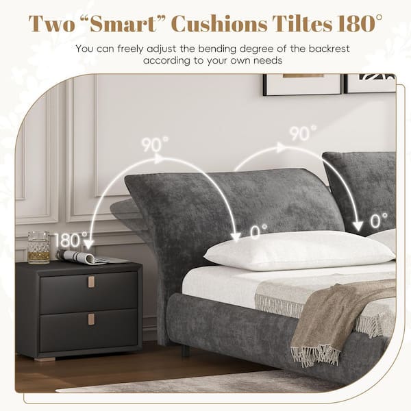 Hargs Contemporary Adjustable Cushions Headboard Dark Gray Fabric Fabric Upholstered Wood Frame King Size Platform Bed