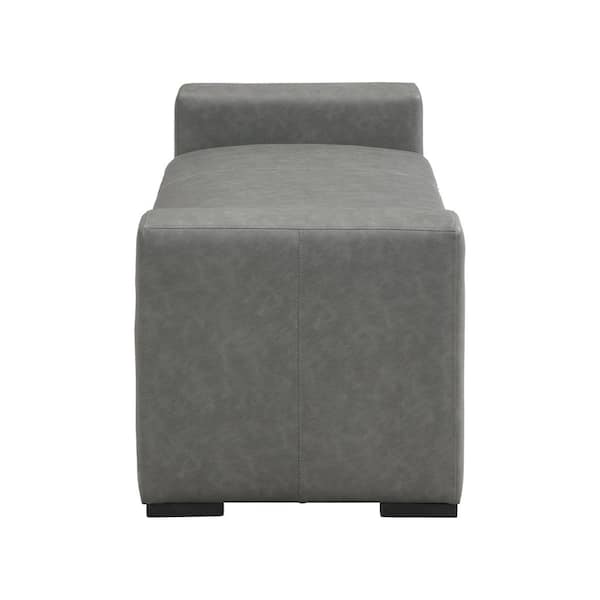 Huller Modern Grey Faux Leather Rectangle Ottoman Bench with Recessed Arms