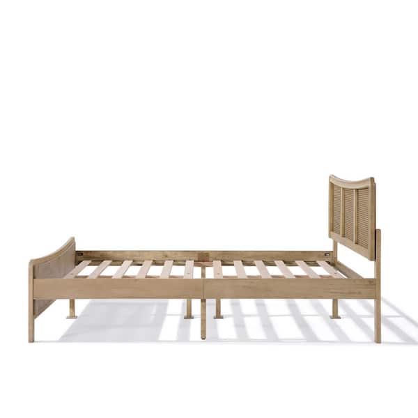 Isra Boho Natural Brown Curved Solid Wood Frame Queen Size Platform Bed with Rattan Woven Headboard and Footboard