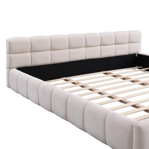 Jackson Beige Chenille Upholstered Wood Frame King Size Platform Bed with Checkerboard Headboard