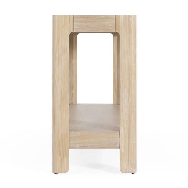 Jeremiah Modern 59 in. Natural Rectangle MDF and Solid Wood Console Table with Storage Shelf, Rounded Corners
