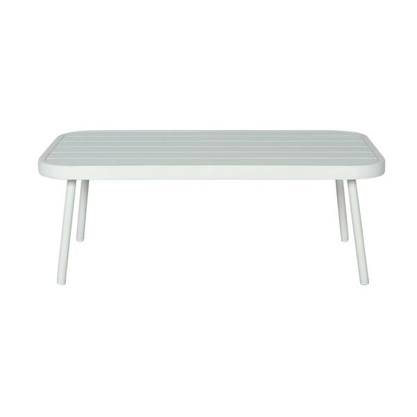Julian Outdoor Off White Metal and Grey Rope Loveseat and Table Set Patio Conversation Set with Light Grey Cushions