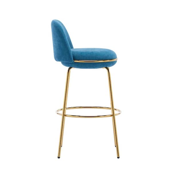 Lila 37.75 in. H Blue Modern Upholstered Bar Stools with Gold Metal Base, (Set of 2)