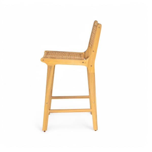 Maxwell Patio Solid Wood and Wicker Outdoor Bar Stool with Footrest, Light Teak + Brown (2-Pack)