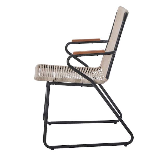 Moonstone Boho 3-Piece Metal and Woven Rope Outdoor Patio Conversation Set, Glass Table Top, Light Brown