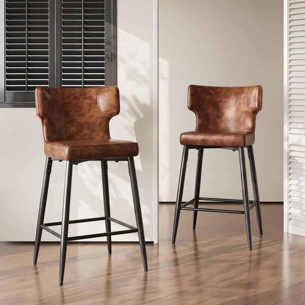 Norsans 28 in. Modern Upholstered Cushioned PU Leather Counter Stool with Footrest, Metal Frame, Brown
