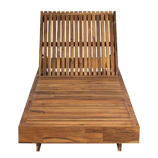 Oasis Modern 1-Piece Patio Solid Wood Adjustable Backrest Outdoor Chaise Lounge without Cushion, Teak Finish