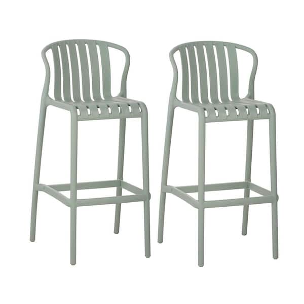 Pixel 29.5 in. H Green Plastic Outdoor Bar Stool (2-Pack), Perforated Slat Back