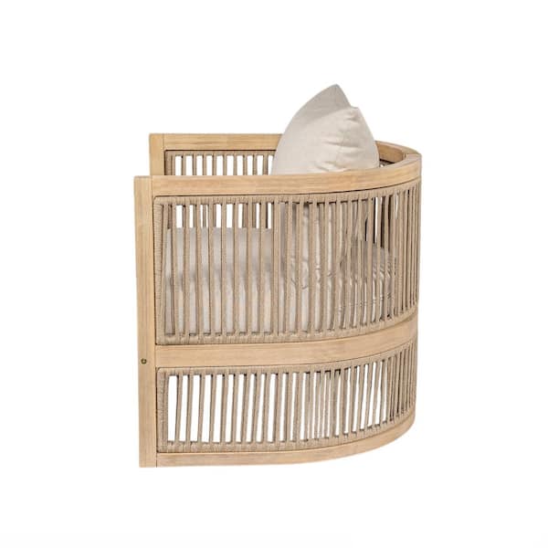 Remy Village Patio Solid Wood and Rope Woven Outdoor Lounge Chair with Beige Cushions, Light Teak Finish