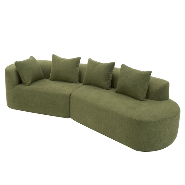 Salta Modern 116 in. 2-Piece Polyester Upholstery Curved Sectional Sofa in. Green with Compressed Sponge, Pillows