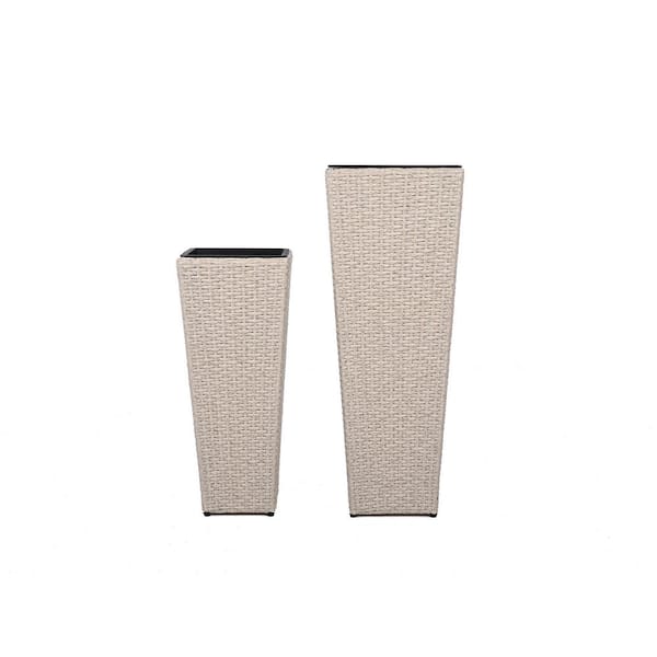 Sanger Beige Polyethylene Wicker Tapered Outdoor Patio Flower Pots with Iron Frame (2-Pack)