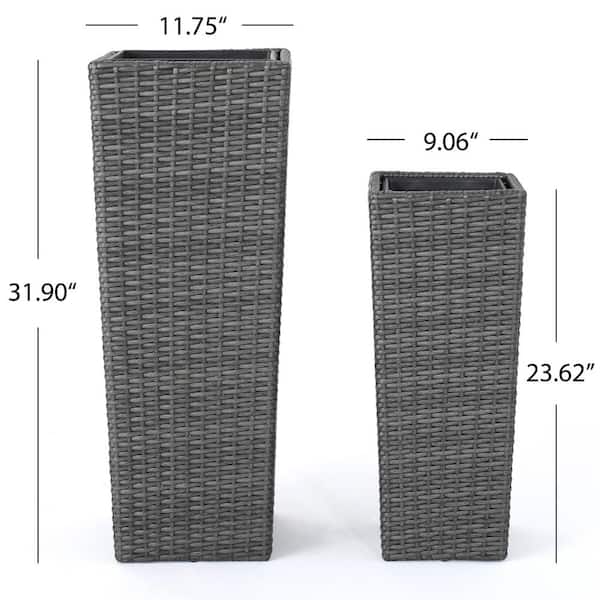 Sanger Gray Polyethylene Wicker and Metal Tapered Outdoor Patio Flower Pots with Iron Frame (2-Pack)