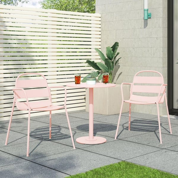 Scaggs Matt Light Pink 3-Piece Metal Outdoor Bistro Set