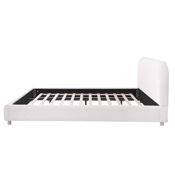 Solara Queen Size Upholstered Boucle Platform Bed with Headboard, Wood Frame, White