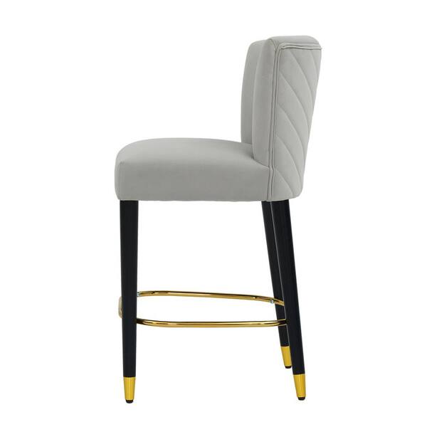 Vantage 27" Upholstered Counter Stools with Footrest, Rosewood Frame, Grey + Black + Gold, Set of 2