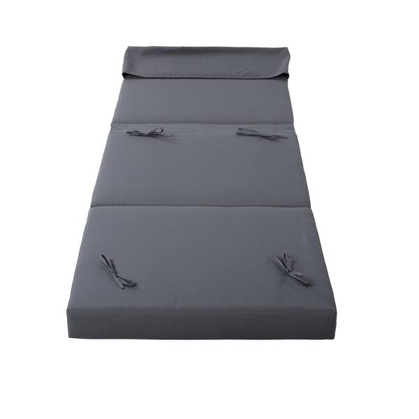 Veridion Patio 76.75 in. x 27 in. x 4 in. Deep Seating Outdoor Chaise Lounge Cushion in Dark Grey with Headrest, Ties