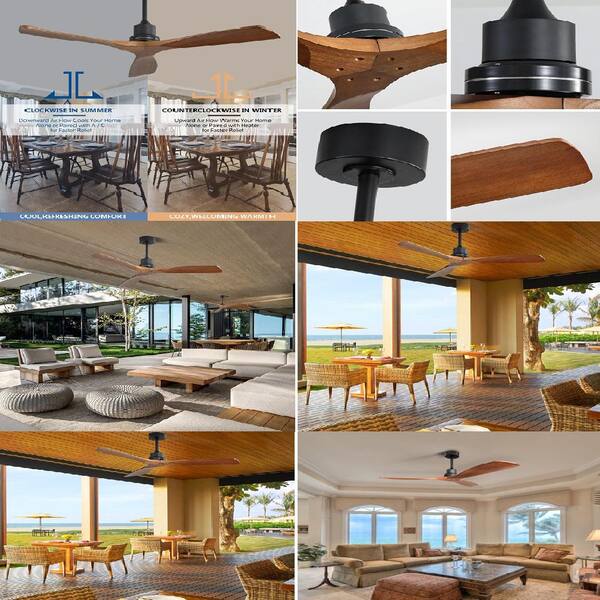 52.1 in. Indoor Black Ceiling Fan 3 Solid Wood Blades with for Living Room