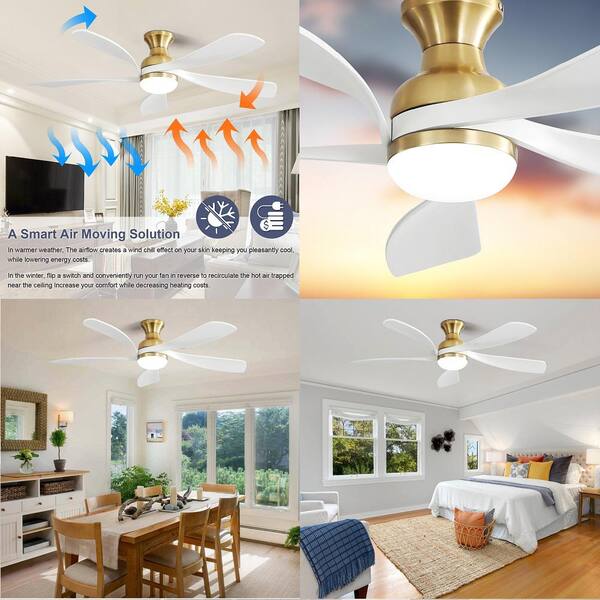 52.1 in. Indoor Gold Plus White Modern Ceiling Fan 5-Solid Wood Blades with Light and Smart APP Control
