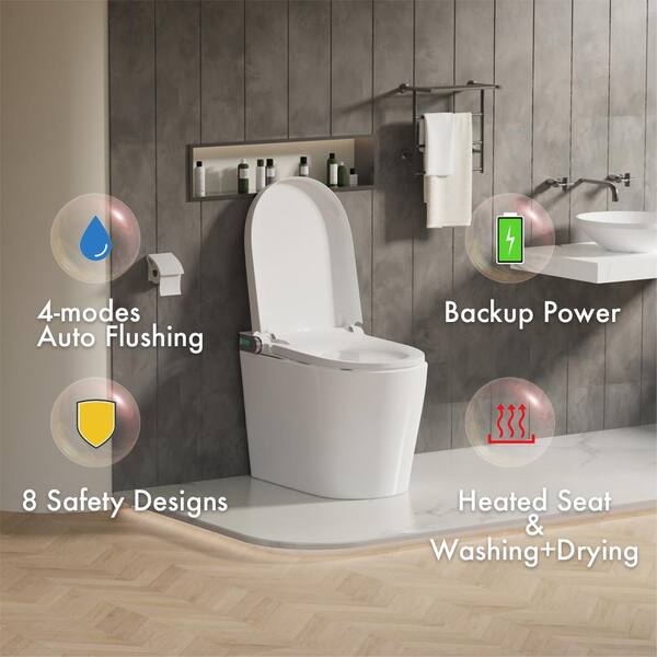Mercury 12 in. 1-Piece 1.2 GPF Single Flush Enlongated Toilet in White Seat Included without Water Pressure Limitation