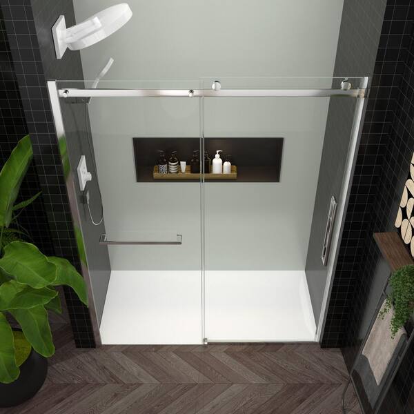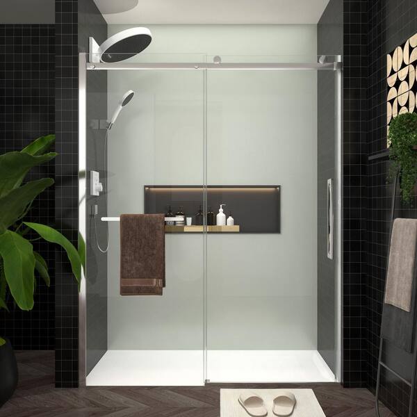 Volans 56-60 in. W x 75.98 in. H Sliding Frameless Shower Door in Polished Chrome Finish with Clear Glass
