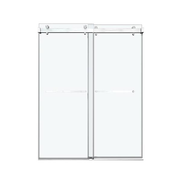 72 in. W x 80 in. H Double Sliding Frameless Shower Door in Brushed Nickel with Clear 3/8 in. Glass