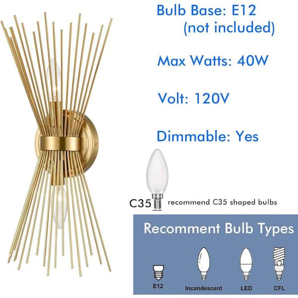 • Use 2 40W E12 base bulbs (not included) for bright illumination