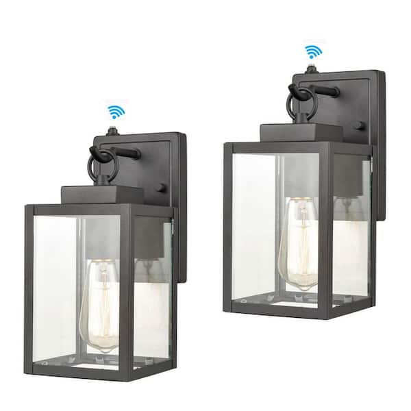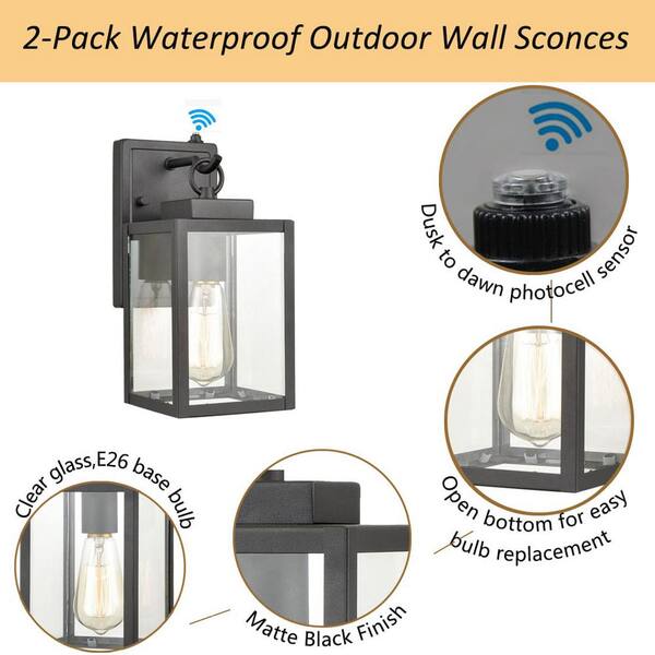 17 in. Black Outdoor Hardwired Lantern Wall Sconce with No Bulbs Included