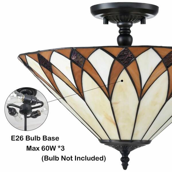 19.7 in. 3-Light Brown Flush Mount with Decorative Glass Shade and No Bulbs Included 1-Pack