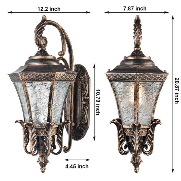 20.87 in. Gold Outdoor Hardwired Lantern Wall Sconce with No Bulbs Included