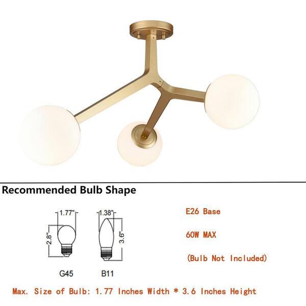 32 in. 3-Light Gold Flush Mount with Frosted Glass Shade and No Bulbs Included 1-Pack