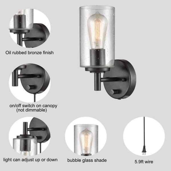 5.11 in. 2-Light Bronze Vanity Light with Clear Glass Shade