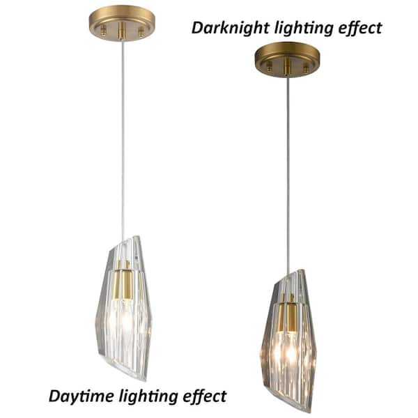 60 Watt 1 Light Gold Finished Shaded Pendant Light with Clear glass Glass Shade and No Bulbs Included