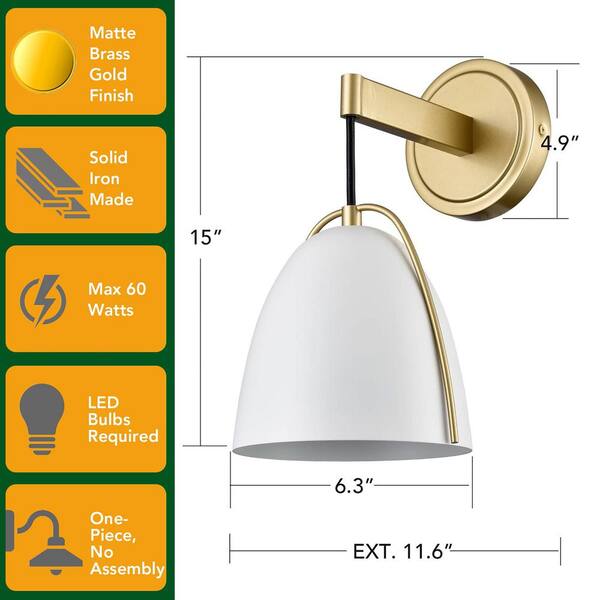 7.09 in. 1 light Gold Modern Wall Sconce with Glass Shade