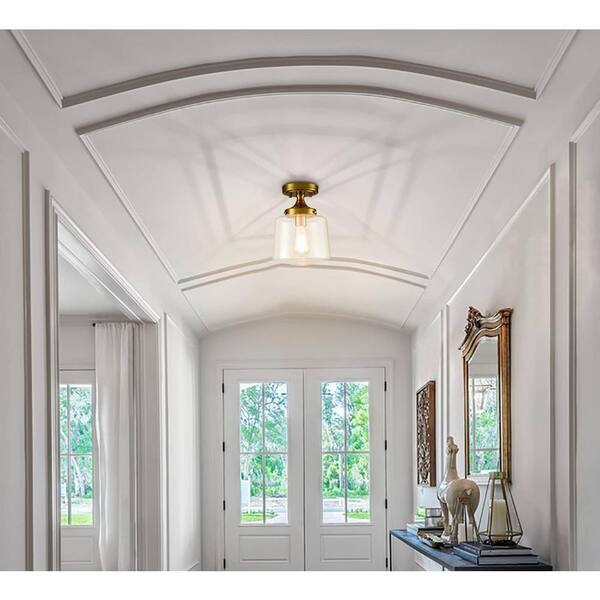 7.87 in. 1-Light Gold Modern Semi-Flush Mount with Clear Glass Shade and No Bulbs Included 1-Pack