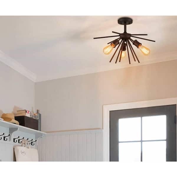 9.45 in. 3-Light Black Flush Mount with No Glass Shade and No Light Bulb Type Included (1-Pack)