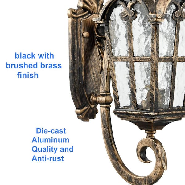 9 in. Gold Outdoor Hardwired Lantern Wall Sconce with No Bulbs Included