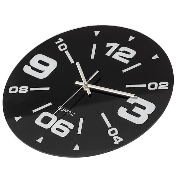 Pack-2 12 in. Black Decorative Modern Round Glass Analog Wall Clock, Perfect for Office, Classroom, Living Room